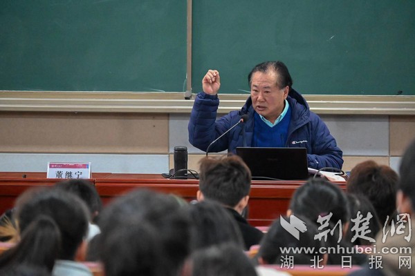讲座开始前,同学们通过《大写湖北人》专题片,了解了董继宁从一名对艺术全然无知的知识青年到艺术大家再到传播艺术的领路人,立志“为祖国山河立传”的感人事迹。