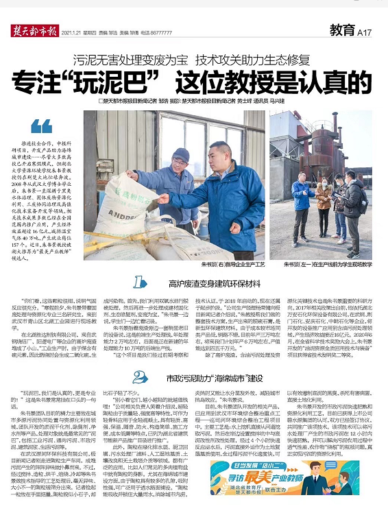 【楚天都市报】最美产业教师丨污泥无害处理变废为宝,这位教授专注“玩泥巴”