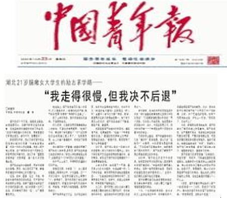 上学15年来,她没落下一节课;每天早上6点45分起床,永远坐第一排;几万字的报告,单手用两根手指敲击键盘完成……“已经受到学校的特殊对待了,如果我自己不努力,在学习、实践上还搞特殊,那我都瞧不起我自己。”