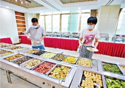 图为师生有序选菜