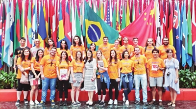 巴西圣保罗州立大学孔子学院的师生在孔院总部合影留念。