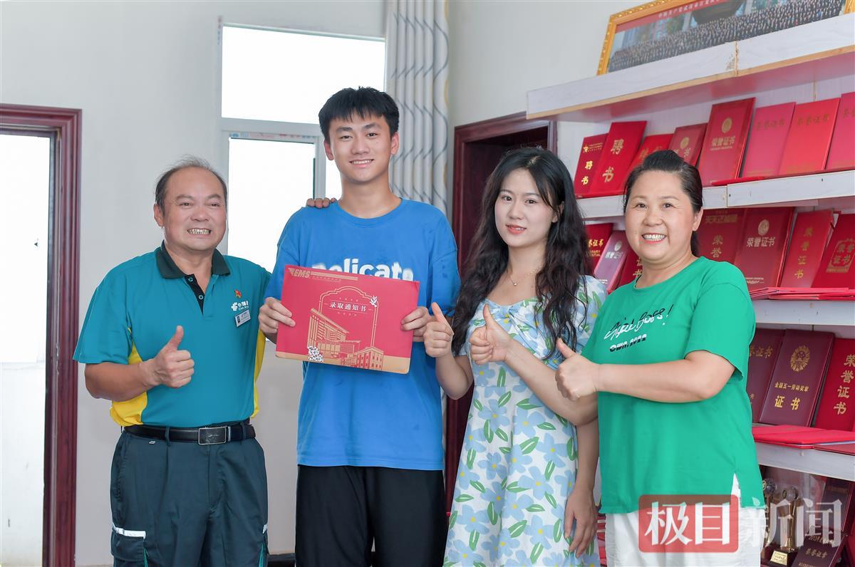 看着父亲常年风吹日晒变得黝黑的面庞,坐在一边的熊文康有些动容地说:“这封通知书因为是父亲亲自投递的,有了更加特别的意义!收到通知书,意味着之前的努力都没有白费,谢谢父母一直以来的付出。”